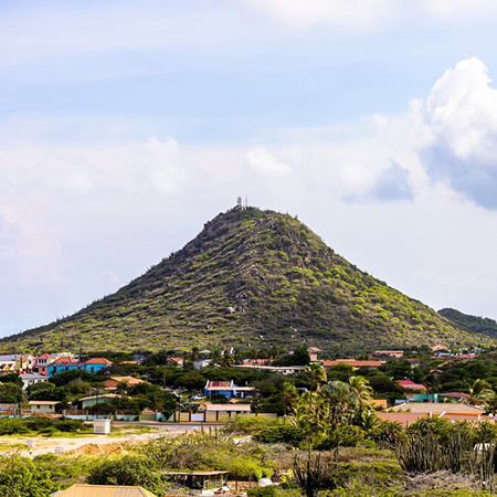 • Hooiberg hill, Aruba’s iconic mountaintop forged by ancient volcanoes.